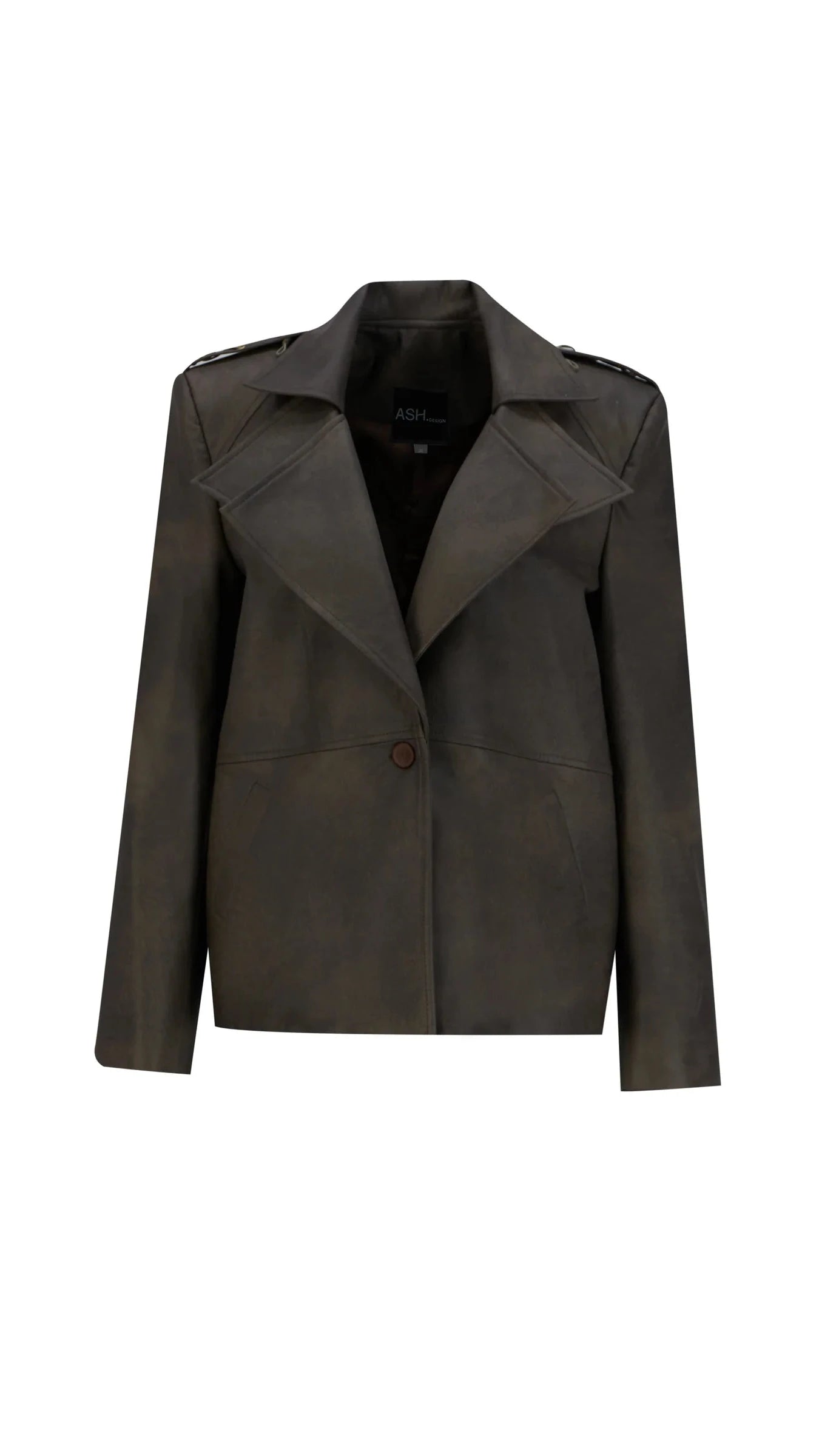 Crafted for elevated everyday styling, the Raya Jacket blends statement detailing with a smooth faux-leather texture. A standout piece that adds edge and sophistication to any wardrobe.